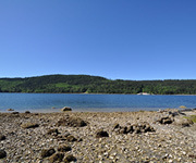 10.9 acres of gently sloping land, 2 land titles. Southern exposed oceanfront property with freshwater creek. Covered in mature Fir, Cedar and Hemlock trees. Forest Service Road access. Approved application to install private moorage.