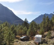 Huge Deal. Package in a 2005 Fleetwood trailer for $5,000 (bought for $18,000). 6 mostly treed acres with driveway, power at lot line, telephone on site, shed, cleared building / RV site & stunning views of Fraser Canyon & mountains. 3 km to Lillooet.