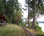 Private oceanfront property with a custom built 2,000 + sq ft log home. This impressive property on 1.95 acres is mostly in its beautiful natural state with mature trees & offers outstanding marine views.