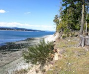Over 3 acres with 327 feet of Sidney island oceanfront. Very private acreage, beautiful driveway already in and cleared building site ready to go. Stunning views across Sidney Channel to Victoria and Mount Douglas.
