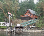 1700' oceanfront, dock, deep water protected moorage. 1000 sq.ft. 2 bdrm + loft main cabin. On site water & power generation system. Easy 10 min. access to mainland marina, 45 mins to downtown Powell River. Subdivision potential.